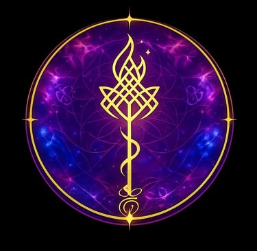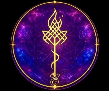 At the center of the seal, flowing golden lines rise above gentle waves, symbolizing life guided by awareness rather than force. These lines reflect balance, discernment, and the ability to move forward with grace—honoring both intuition and responsibility. They evoke breath, water, and energy in motion: the essential forces that sustain life.
